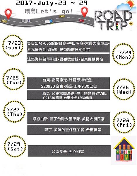 出發前,團員們逼我生出一張精美的行程表(因為前陣子沈迷於小畫家⋯⋯)聽說小畫家要撤了,我有種頓失浮木的感覺(哭) 實際上的行程是這樣:D1 : 台北—055龍蝦餐廳—牛山呼庭—光復糖廠日式宿舍—房客免費租借單車—啄木鳥晚餐(住房附晚餐)—住光復糖廠日式宿舍 (旅展購入住宿卷)D2 : 透早光復糖廠吃冰(都沒人)—台東法樂海原住民無菜單料理—成功晉領號賞鯨豚船—台東市區假期民宿(週一夜市沒開)